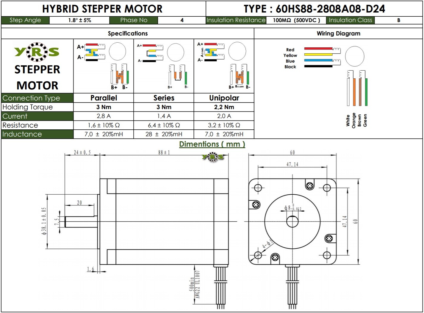 Nema 24 60HS88 Step Motor 3Nm