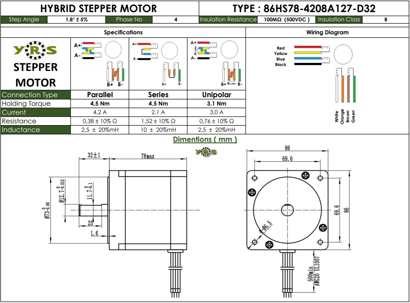 Nema 34 86HS78 Step Motor 4,5Nm